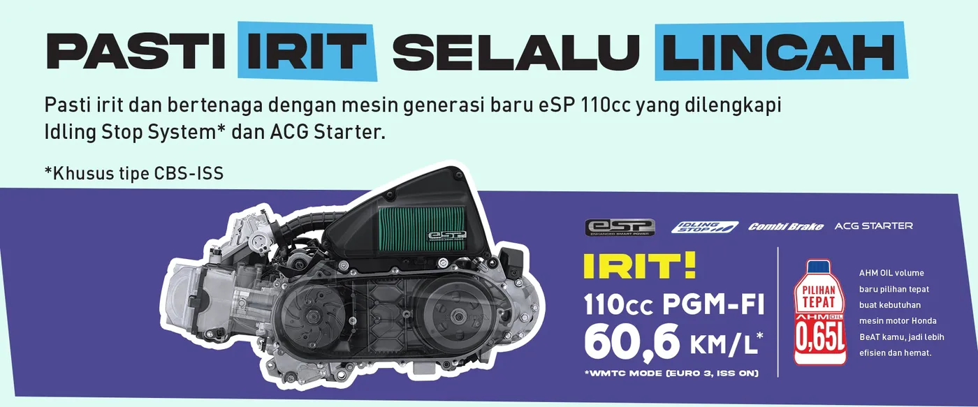 | Tipe Baterai Atau Aki | BeAT MF 12V-3Ah (Tipe CBS) MF 12V-5Ah (Tipe CBS-ISS) |